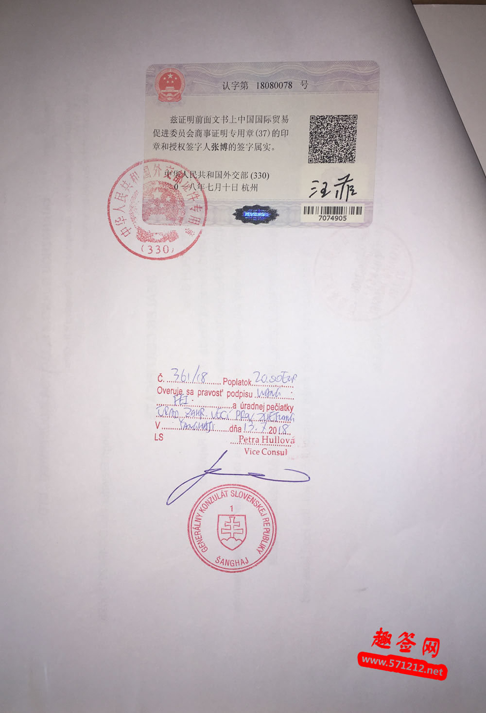 斯洛伐克大使馆认证样本
